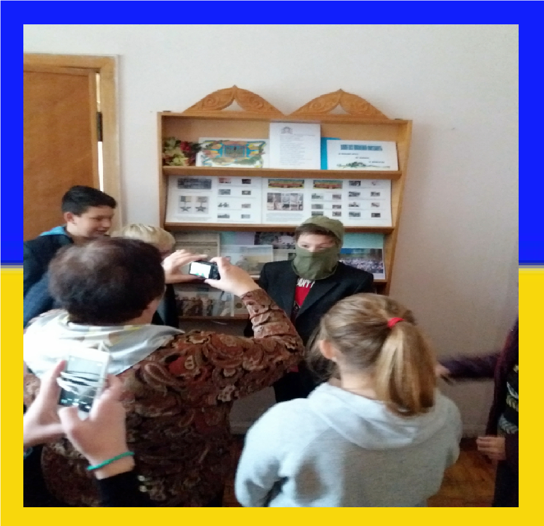 Виставка доповнюється експонатами із зони проведення антитерористичної операції: прапор і емблема батальйону імені генерала Кульчицького, особисті речі бійця Національної гвардії України Юрія К., подаровані бібліотеці на пам'ять та матеріалами з церемонії нагородження героїв АТО - мешканців Солом'янського району.
